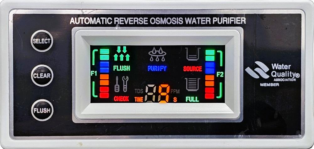 - Afiseaza nivelul de puritate al apei pure filtrate (TDS-2 digiti) si declanseaza alarma sonora cand TDS-ul apei purificate este ridicat.